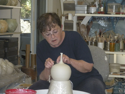 | Long-time ceramic league member Marsha Silverman was born in New York City in 1943. After studying ballet at the old Metropolitan Opera and Joffrey Ballet and deciding ballet was not going to be her career, she enrolled in the School of the Museum of Fine Arts in Boston, where she majored in ceramics. She was awarded the Boit Prize and the Clarissa Bartlett Traveling Scholarship in 1971. She set up her first studio in Rexford, New York, in 1972. After marrying in 1975, she moved her studio to Anchorage, Kentucky. Her studio was located in Miami, Florida, where she lived and worked from 1981 until she retired to Tysons, Virginia in 2024. Marsha died in October 2024. |