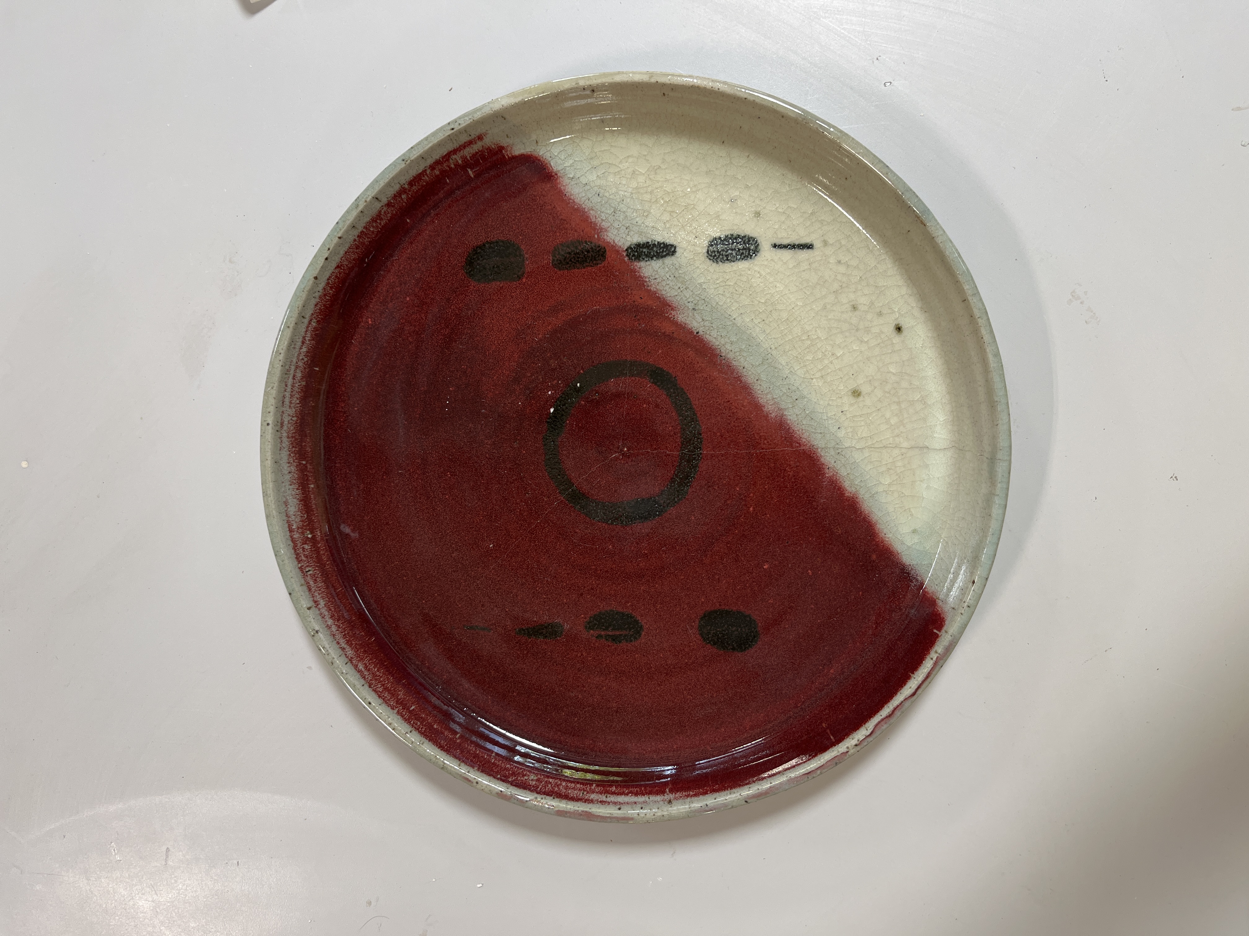 Glaze- MacKenzie White with copper, Splatter black Decoration